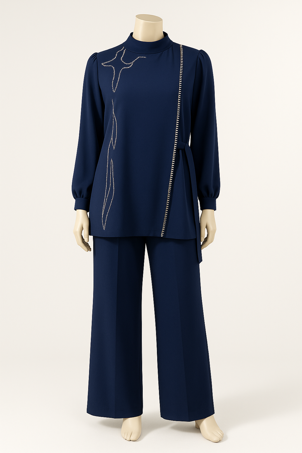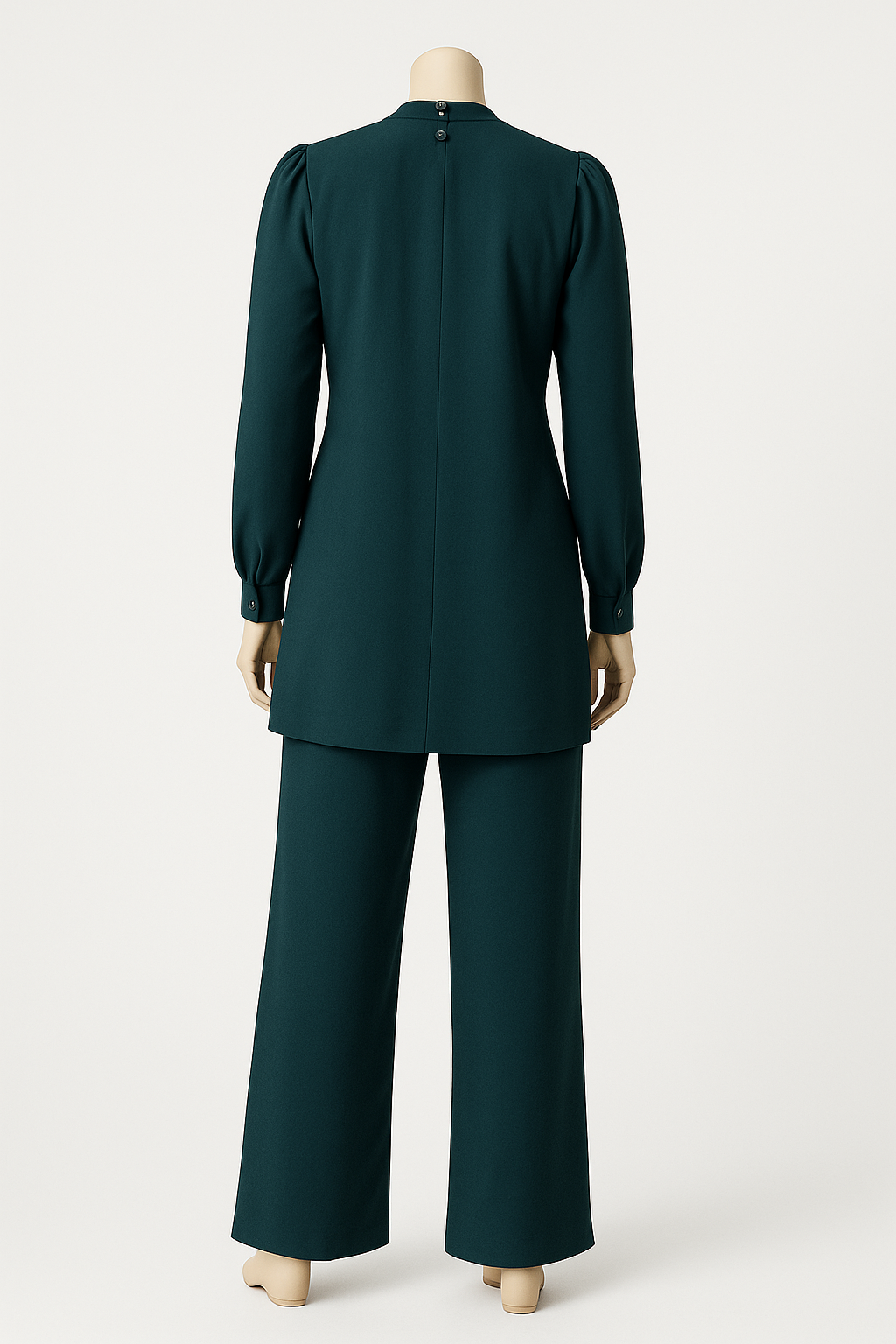 YONA ROYAL Ensemble de deux pièces fluide et raffiné, orné de perlées. Disponible en bleu saphir et vert émeraude, il allie élégance, pudeur et confort avec une coupe ample et des finitions soignées.